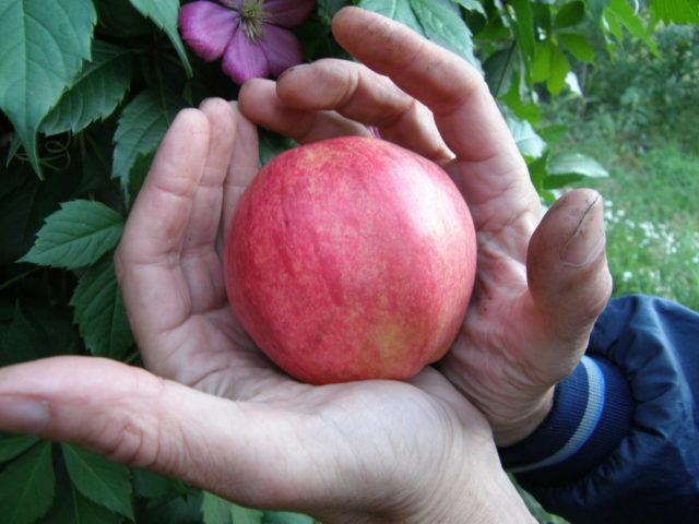 L’escorça és rugosa, marró. Els fruits són grans, generalment rodons, lleugerament reduïts cap avall. El pes mitjà d’una poma és de 140 a 150 g. El color de les pomes a la maduresa tècnica és de color groc-verd, en plena fase de maduresa: vermell fosc. La pell és llisa i brillant.