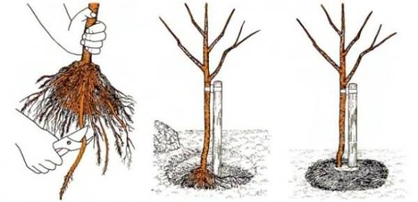 Les plàntules de poma Melba es venen amb un sistema d’arrels tancades, cultivades en un recipient i amb arrels obertes. Tots dos tenen els seus pros i els seus contres. En el primer cas, no hi ha manera de controlar l’estat del sistema radicular, però si la plàntula es cultiva inicialment en un contenidor, la taxa de supervivència serà del 100% i en qualsevol època de l’any, excepte a l’hivern. En el segon cas, l'estat de les arrels és clarament visible, però un emmagatzematge inadequat pot destruir les plantules de pomeres i no arrelaran. Abans de plantar, inspeccionen les arrels, tallen totes les deteriorades i deteriorades, assegureu-vos d’escampar les ferides amb carbó triturat.