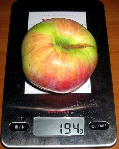 Les pomes de la varietat Melba tenen una mida mitjana i en pomeres joves estan per sobre de la mitjana.Són força grans, de 140 a 200 g de pes complet i més. Tenen forma de con amb una base arrodonida a la tija.