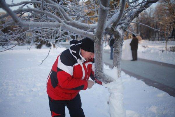 Els arbres joves són molt sensibles a les gelades, de manera que estan completament coberts durant l’hivern. Es pot fer amb branques d’avet. Quan cau la neu, es recull una deriva de neu al voltant del pomer, que serveix de protecció addicional.