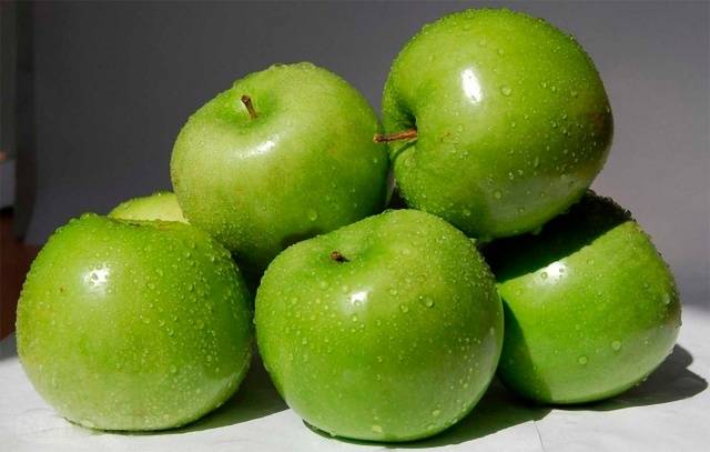 Els fruits madurs són de color verd brillant; pot aparèixer un color rosa clar al costat assolellat. La polpa és de gra fi, sucosa, densa, blanca o lleugerament verdosa. El sabor és agradable, dolç i àcid. Durant l’emmagatzematge, la pell adquireix un to groc i la consistència de la poma es fa més fluixa.