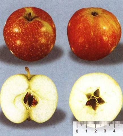 Les pomes tenen un lleuger recobriment cerós i tota la superfície està tacada de punxades subcutànies. Alguns tenen un centre de suro. El peduncle és prim i no és molt llarg.
