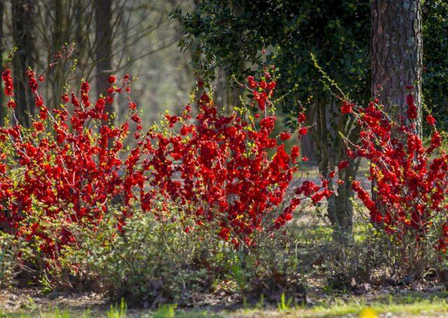 En plantar diversos exemplars de chaenomeles, heu de deixar entre 1 i 1,5 m d’espai