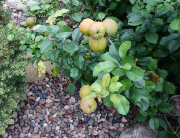 Per tal que les males herbes no creixin a les arrels del codony, el cercle prop de la tija es pot esquitxar amb còdols petits