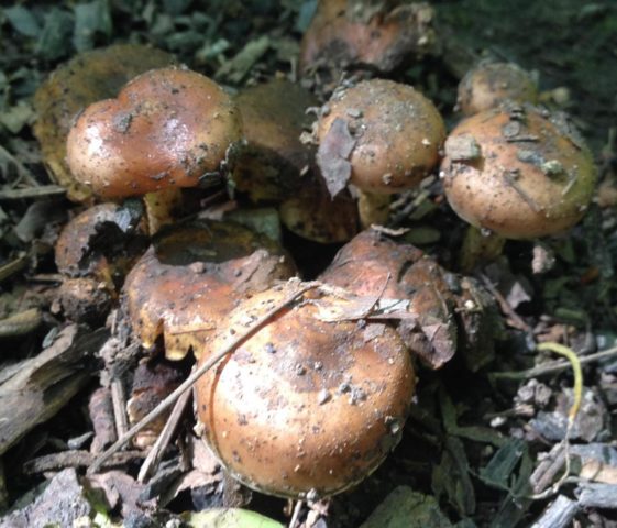 En els flocs joves, el casquet amant del carbó sembla un hemisferi, durant el creixement s’obre. El diàmetre és de 2 a 6 cm, el color és heterogeni, de color marró amb un to taronja, més a prop de les vores el color es fa més clar. La superfície de la tapa és enganxosa, brillant i amb escates petites, radials i fibroses. A causa de l’alta humitat en temps humit i plujós, la pell del casquet es rellisca, ja que es cobreix de moc, per la calor és enganxosa i brillant. Les vores són ondulades i al centre del casquet hi ha un ampli tubercle truncat. La carn és força densa, al trencar-se d’un color groc clar o marró clar.
