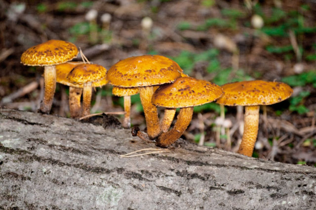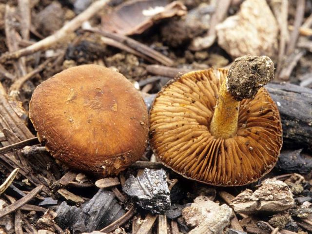 Cinder escamós va rebre el seu nom per la superfície escamosa del cos fructífer. Pertany a bolets de plàstic. Les plaques estan situades a una petita distància les unes de les altres, s’acretan amb la tija, hi ha espores. En els exemplars joves, les plaques són grises, però a mesura que les espores creixen i maduren, l’ombra canvia a marró argilós.