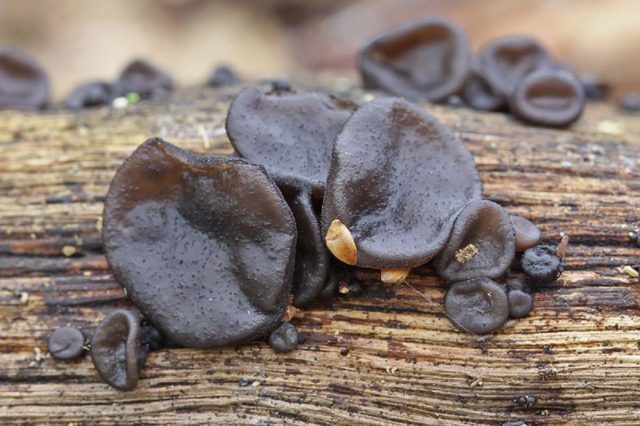 - Exidia truncada (Exidia truncata). Té un barret negre pla ben definit, que s’adjunta al substrat cap als costats. No s’utilitza per menjar.