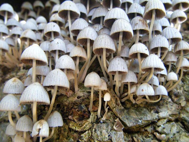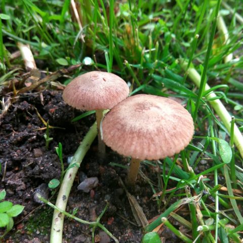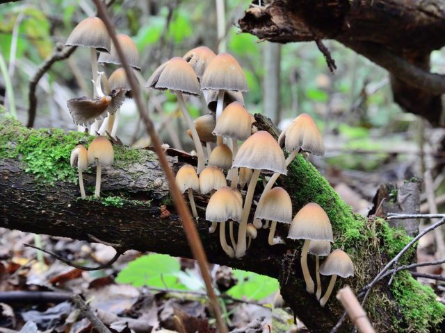 Fems plegats... Un bolet petit amb un casquet marró groguenc, amb costelles o plegat. En els joves, té forma de campana, i després es redreça a pla. El seu diàmetre és de 0,8-2 cm. La cama és clara, amb una superfície llisa, de 4 a 8 cm d'alçada. Les plaques són de color groc pàl·lid, la carn és prima. Fruita des de la primavera fins a finals de tardor. Creix individualment o en colònies. No s’utilitza per menjar.