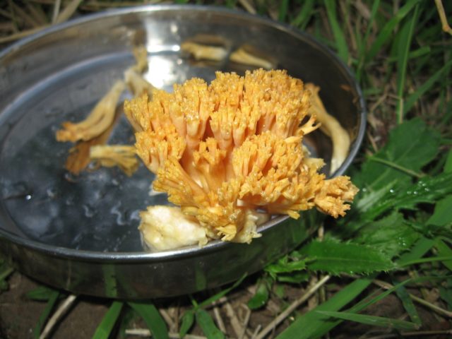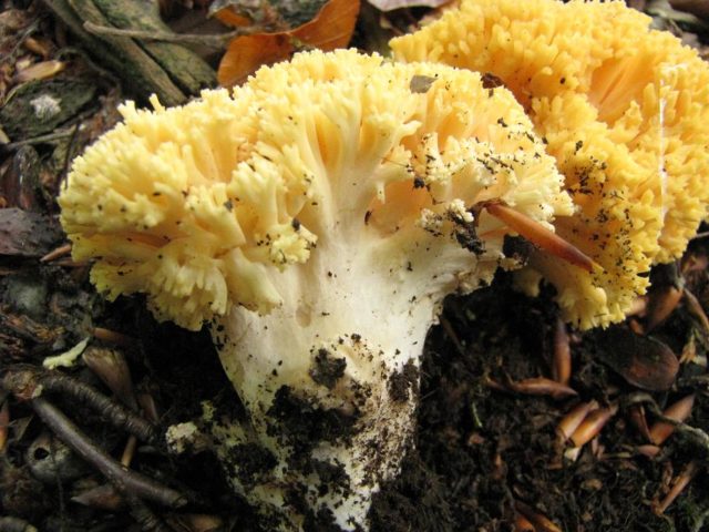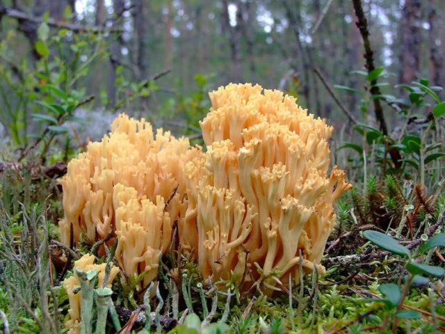 - Groc Ramaria (groc cornós, banyes de cérvol). Es tracta d’un bolet bastant gran, que pot arribar a una alçada de 20 cm, mentre que el seu diàmetre pot arribar als 16 cm. El cos del fruit és una part central massiva de color blanc, semblant a una soca de col, a partir de la qual creixen nombrosos brots en diferents direccions, lleugerament similar a les cornamentes ramificades (d'aquí el nom - banyes de cérvol). El seu color és groc, més clar més a prop de la base, es torna brillant a la perifèria. Quan es prem, el color del bolet canvia a cognac. Creix en boscos mixts i de coníferes, el pic de creixement s’observa a finals d’estiu i principis de tardor.Àmpliament distribuït als boscos de Carèlia, que es troba al Caucas, a Europa occidental i central. Pertany a bolets comestibles, però, els bolets de banyes grogues només es cullen a una edat primerenca, ja que els exemplars adults comencen a tenir un gust molt amarg. Abans de començar a coure la ramaria groga, els cossos fructífers del bolet s’han de remullar i tractar tèrmicament.