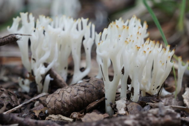 - Corall Clavulina (banya de cresta amb banyes). Forma un cos fructífer arbustiu amb molts petits processos. L'alçada de l'arbust pot arribar als 10 cm. La part superior dels cossos del fruit és plana, en forma de pinta, punxeguda. El color del bolet és blanc, lletós, de vegades una mica groguenc o cremós, la carn és fràgil, blanca. Creix de juliol a octubre en boscos mixtos o de coníferes, en sòls o escombraries de restes forestals caigudes. Pot créixer tant en sentit puntual com en grups grans. El bolet no és verinós, però normalment no es menja pel seu sabor amarg. Tot i això, això no impedeix que alguns amants dels experiments culinaris ho provin, com demostren les ressenyes disponibles.