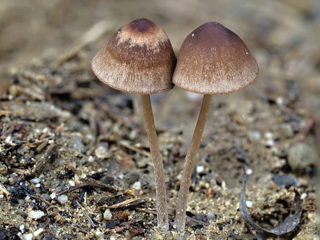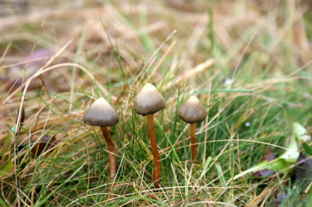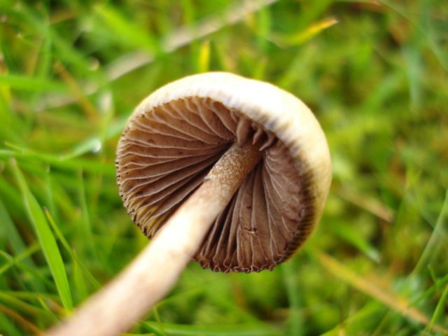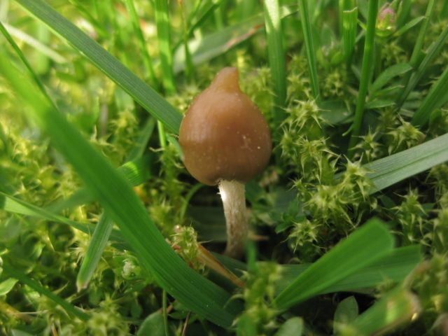 El psilocib semi-lanceolat s’assembla a una campana en una tija prima