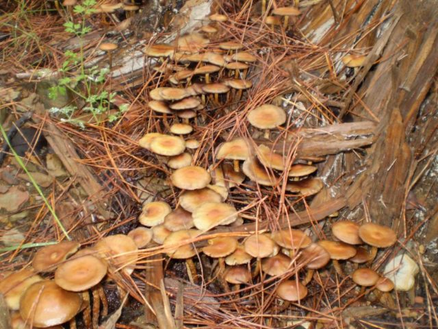 Els exemplars creixuts tenen taps marrons sorrencs plans o corbats.