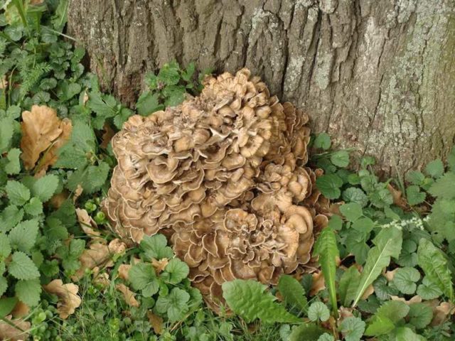 El fals homòleg més famós de meitake és el meripilus gegant. També creix a les arrels dels arbres de fulla caduca, selecciona principalment roures i faigs, té un gran cos fructífer, format per nombrosos casquets de formigó. És adequat per al consum humà, però menys saborós i saludable que el meitake.