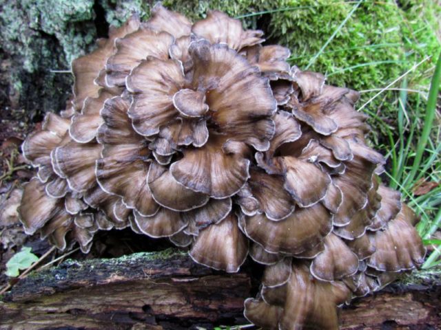 Un vídeo d'un bolet de carn mostra que aquesta espècie de bolet sembla una espècie d'arbust, format per nombrosos bolets petits amb casquet. Les potes d’aquests bolets són llargues i ben definides, d’ombra clara i els barrets són similars a les fulles o llengües llenyoses, són de color fosc a les vores i més clars a la part central.