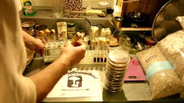 Si la tasca consisteix a multiplicar encara més el miceli de bolets, el contingut dels tubs s’introdueix en grans pots plens de substrat per 2/3. Aquest procediment també requereix condicions estèrils: