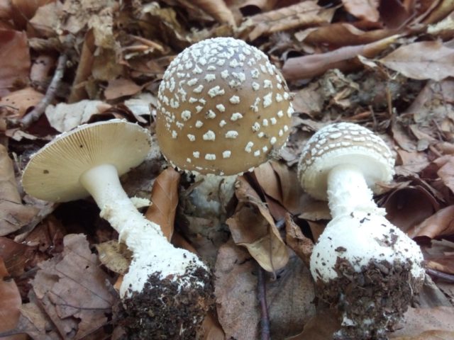 Una altra diferència és la forma de la cama. A l’agaric mosca de color rosa-gris, sovint té la forma d’un con invers, que es redueix cap avall. Al mateix temps, el Volvo a la part inferior de la cama d’aquesta espècie s’expressa dèbilment o està completament absent.