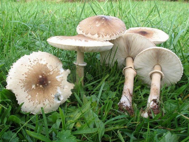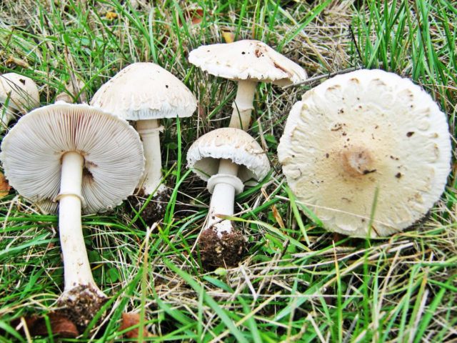 Al començament del creixement dels gripaus de primavera, es poden prendre fàcilment recollint bolets joves. A les espècies de camp, com a les grans espores, i també al prat, a una edat primerenca, els casquets i les plaques semiesfèriques lleugeres són gairebé els mateixos que a l’agàric de la primavera. Quan es trenca el cobrellit, queda un anell a la tija del xampinyó. Però en els bolets adults, les plaques són rosades, més tard es tornen marrons, i això és diferent de l’agaric blanc.