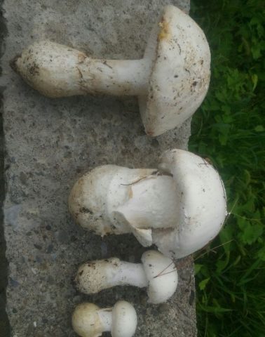 La mida dels cossos fructífers sovint depèn de la climatologia i del valor nutritiu del sòl. L’alçada mitjana sol ser de 10 a 15 cm El color de la gorra i les potes és blanc, però altres bolets tenen el mateix color. Tot i així, el color també pot ser variable. També hi ha varietats més fosques.