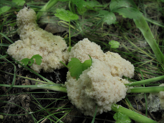 Mucilago crustal és fàcilment visible en herba densa o molsa verda