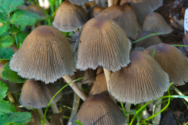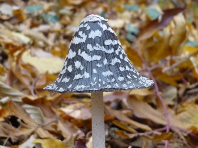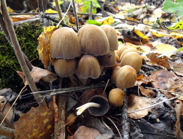 - El fem està plegat. La superfície de la tapa està reunida en petits plecs (com una faldilla plisada). La seva superfície és marró clar en exemplars joves, i marró grisenc en exemplars més vells. Aquesta varietat té un capell molt prim. Amb el pas del temps, s’obre i es converteix en un paraigua. La pota pot fer fins a 8 cm d'alçada, mentre que el seu diàmetre no supera els 2 mm. Aquesta espècie no és comestible i “viu” durant només 24 hores.