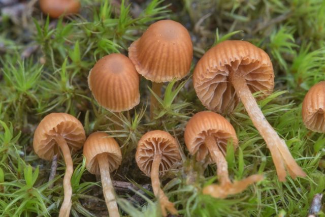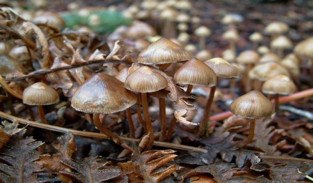- Psilocibi Montana- Un bolet petit amb fortes propietats al·lucinògenes.El casquet d’aquesta espècie arriba a un diàmetre de fins a 2,5 cm i la seva forma és un hemisferi amb un notable tubercle central, cosa que la fa distingir-se del psilòcib txec.