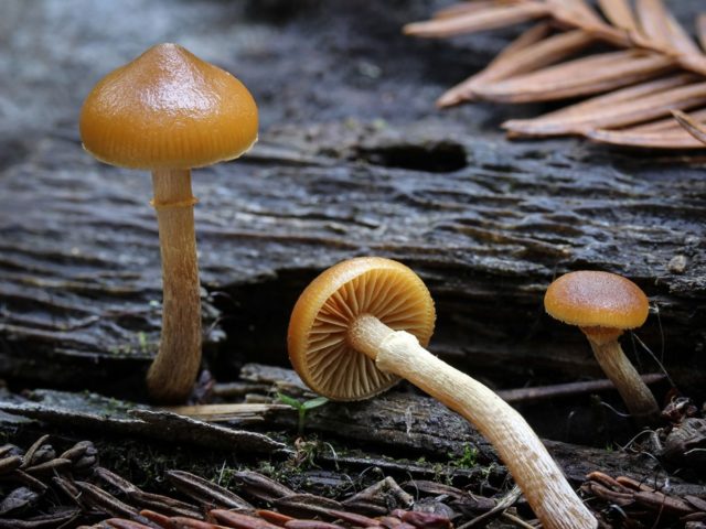 Konocybe és tendre. Aquesta espècie no és comestible. Creix en prats, pastures i gespes forestals ben il·luminades durant la temporada càlida. Es diferencia per la mida petita: alçada - 4-8 cm, diàmetre - 1-3 cm. Una diferència característica són les plaques marrons gruixudes, així com el color ocre-taronja de la tapa. El nom oficial és Conocybe tenera.