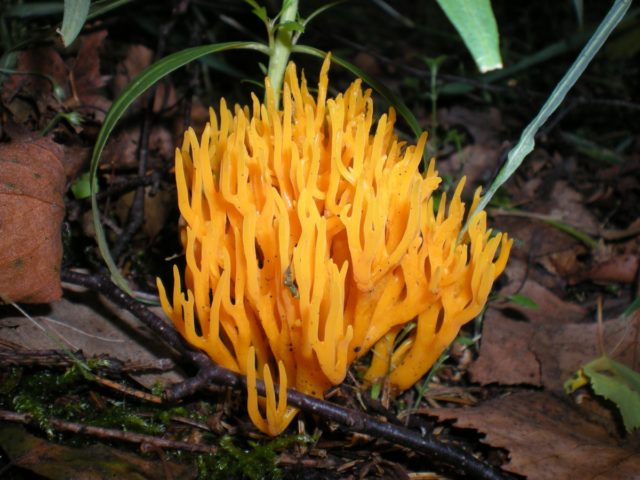 El silur recte es pot confondre amb Calocera viscosa. Després d’una inspecció més detallada, es poden trobar diferències significatives entre les espècies. El color dels calocers gomosos és més saturat, gairebé cridaner. El cos de la fruita pot tenir un to groc brillant o taronja brillant. L’alçada del calocera no supera els 10 cm. Nombroses branques es ramifiquen dicotòmicament, és a dir, l’eix principal es bifurca i atura el seu propi creixement. Aquesta ramificació es repeteix moltes vegades, com a conseqüència de la qual el bolet es converteix en un arbust, un corall o un foc congelat. Es refereix a no comestible.