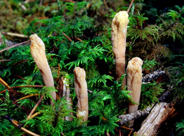 El cos fruiter d’aquests bolets té forma de porra, pot créixer fins a 20 cm d’alçada i fins a 3 cm d’amplada. Si es tracta d’un exemplar adult hi són visibles les arrugues longitudinals. Les banyes de pistil joves són llises. Pols d’espores de color blanc o groc clar.