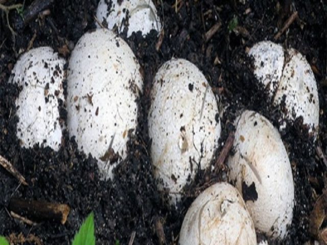 Durant el creixement, un cos surt del terra en forma d’ou blanc. En aquest estat, el bolet es manté de diversos dies a un mes, després dels quals creix en 30 minuts, fins arribar a una alçada de 30 cm.