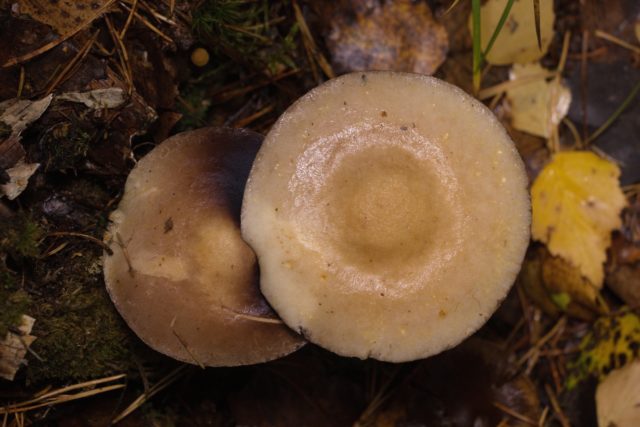 La part superior del bolet té inicialment la forma d’un hemisferi, però a mesura que madura, s’aplana i adquireix una suavitat característica. El diàmetre de la tapa pot arribar als 5 a 10 cm. Al mateix temps, les seves vores són ondulades, lleugerament amuntegades. Quan es toca la superfície, es nota l’adherència.