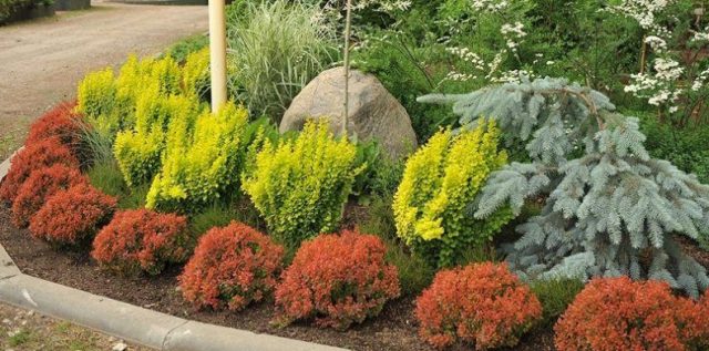 La corona del flamenc Thunberg Barberry es pot donar fàcilment a qualsevol forma (bola, prisma, cub). Les fulles de color porpra fosc tenen bon aspecte contra les formes daurades. Un arbust relativament baix i compacte es planta als marges de les masses d’aigua, al centre i a la vora dels jardins rocosos japonesos. Estan decorades amb tobogans alpins, parterres amb plantes perennes.