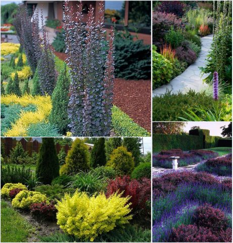 Els dissenyadors de paisatges planten arbusts de nabius Red Rocket en crear diapositives alpines, decorant mixborders. Les plantacions individuals en tests es poden reposicionar segons es desitgi. La fotografia mostra clarament que el coet vermell Tunberg Red Rocket és un element de la composició del jardí, que permet als dissenyadors expressar al màxim la seva imaginació.