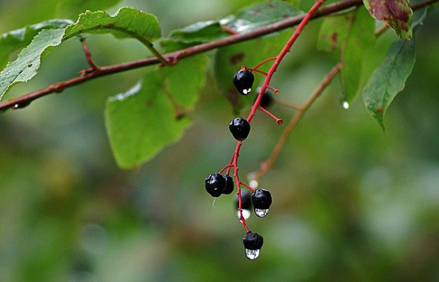 Després de la floració, el cirerer de l’ocell s’aspergeix amb una solució de l’1% de líquid bordeus.