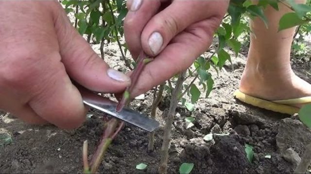 - El terreny s’humiteja correctament i, a continuació, el tall s’enterra verticalment a una profunditat d’uns 3 cm. La distància entre brots individuals ha de ser d’uns 10 cm.