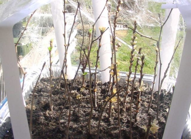 Immediatament després de la sembra, els brots es cobreixen amb polietilè per crear un efecte hivernacle i fer créixer les cireres a partir d’un branquet i posar-los en un lloc càlid. De tant en tant, els brots s’han de regar i ventilar. Amb la cura adequada, trigaran unes 2 setmanes a aparèixer les arrels i caldrà el mateix temps perquè els brots s’arrelin correctament.