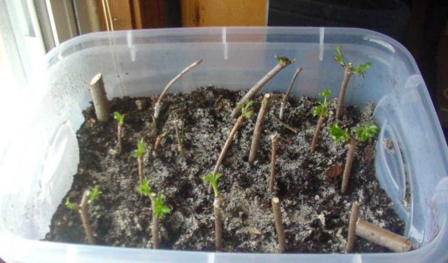 Després, els contenidors amb esqueixos es poden col·locar en un lloc il·luminat i continuar cuidant-los fins al final de la primavera, regar i alimentar una vegada cada 2 setmanes. La pel·lícula es pot treure dels brots després que apareguin les arrels.