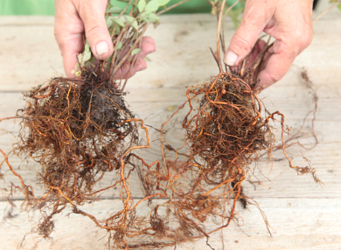 S'examina una plàntula de nabius amb un sistema arrel obert. Es tallen les arrels danyades, es tracten amb una solució de permanganat de potassi de color rosa, s’escampen els talls amb carbó actiu triturat.