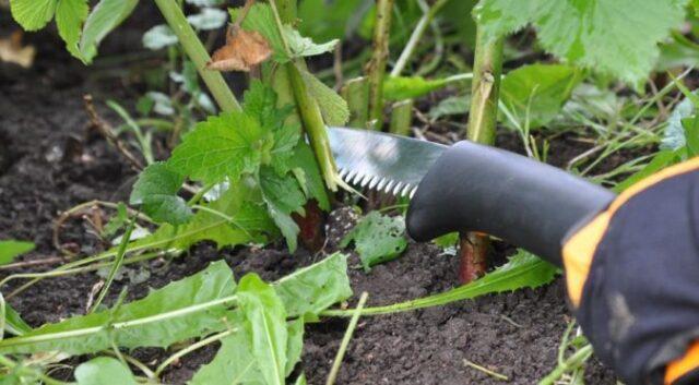 - Feu un pas enrere de 15 cm i traieu totes les fulles per sota d’aquesta marca.