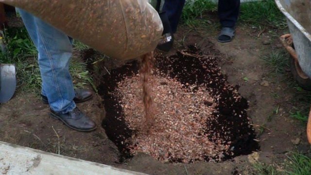 - Si el sòl és argilós, es col·loca maó trencat o pedra triturada al fons. El gruix de la capa és de 10 a 15 cm.