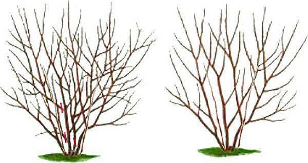 La poda sanitària s’ha de fer a la primavera abans que les fulles comencin a florir i a la tardor després de caure. La poda rejovenidora és l’eliminació completa dels brots de més de 6 anys. Ràpidament seran substituïts per joves.