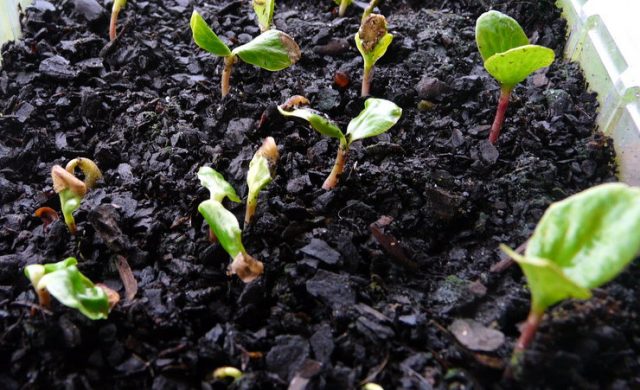 Quan apareguin totes les plàntules, haureu de treure la pel·lícula i posar la caixa amb les plàntules al davall de la finestra. En aquest cas, no és desitjable que els raigs del sol caiguin directament sobre els brots. En alguns casos, es recomana enganxar fins i tot la finestra o posar la caixa al costat ombrívol. Podeu plantar als llits després que apareguin 4 fulles als brots. Segons el clima, es pot plantar en terreny obert o en un hivernacle fred.