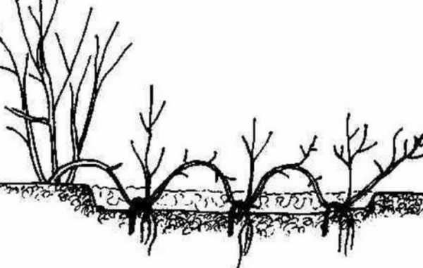 - Horitzontal. Al voltant de l’arbust, s’han de fer ranures de fins a 20 cm de profunditat. Les capes es col·loquen en ranures, premsades amb estaques de fusta, abraçadores metàl·liques. Escampeu els solcs amb terra. La part superior de les capes s’ha de deixar a la superfície de la terra. Fins a la tardor cal regar el sòl.
