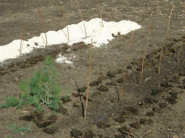 - Després de fondre la neu, extreu els esqueixos, actualitzeu-ne els talls i organitzeu-los en files, mantenint una distància de 5-10 cm, i torneu-los a escampar amb terra.