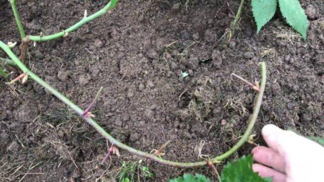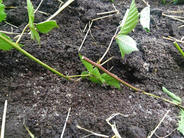 La reproducció de mores de jardí per capes horitzontals també s’utilitza principalment per a varietats rastreres. Cal escollir un brot flexible jove, inclinar-lo cap al terra i aprofundir-lo fins a 20 cm perquè la base i la part superior sobresurten del sòl.