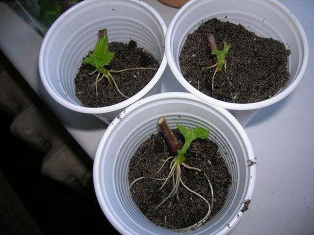 Quan es planten a la primavera, els esqueixos d’arrels tenen temps per donar 2-3 brots ben desenvolupats per temporada