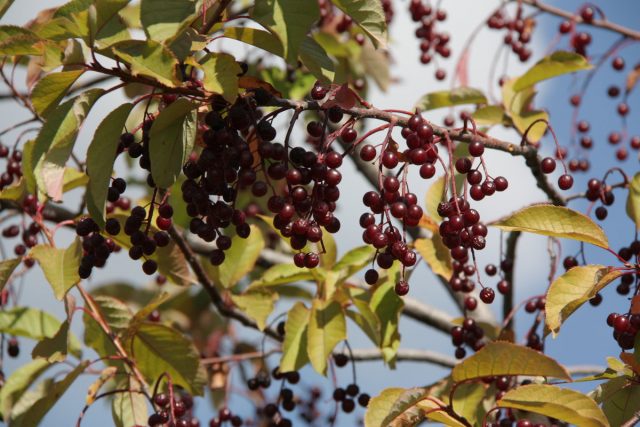 Ocell cirera de Virgínia. Es troba al llarg de rius i masses d’aigua d’Amèrica del Nord. S’assembla al cirerer ocell comú. La seva principal diferència són els cabdells més petits que estan allunyats dels brots. L’arbre fa fins a 15 m d’alçada. A la tardor, les fulles es tornen de colors vius. Els fruits són rodons, a mesura que maduren, canvien de color de vermell a negre. La polpa és sucosa i comestible.