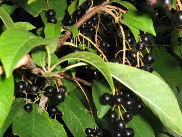Al juliol, maduren els fruits esfèrics. La seva mida és de 8-10 mm. La polpa és verda, astringent. L’os és ovoide. Les drupes són al principi denses i verdes. Quan està madura, la pell es torna vermella i negre.