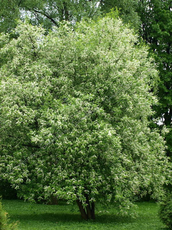 Gavina. L’arbre creix fins als 4,5 m d’alçada. Les flors són grans, blanques. Inflorescències racemoses, de fins a 15 cm de llargada. Les flors tenen un fort aroma. Les fulles són allargades, de color verd. La corona està estesa i espessa. L’arbre tolera bé les gelades moderades.