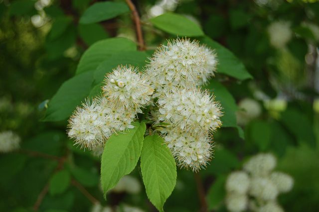 Antipka cirerer ocell. Un arbre curt amb una corona esfèrica. Les fulles són arrodonides, les flors són petites, blanques, creixen en grups. S’utilitza per paisatgisme a les regions del sud. Tolerant a la sequera, però pateix gelades de primavera.