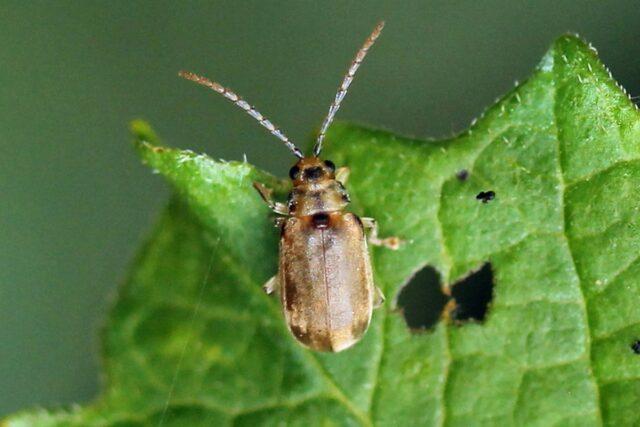 L’escarabat de les fulles posa ous als brots a la tardor, de manera que el primer tractament s’ha de fer a principis de primavera.